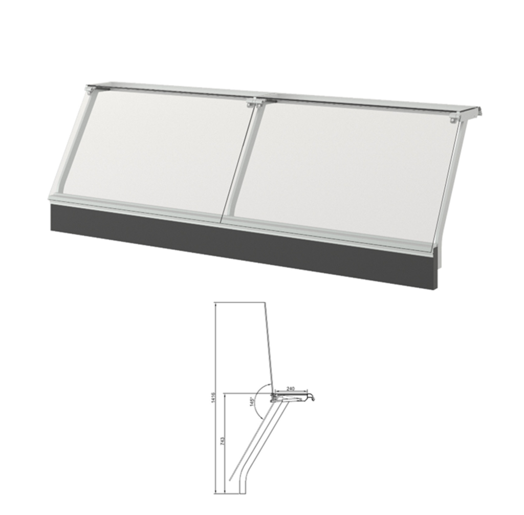 The GX-IFG Bended Lift-Up System is developed for angled and specially shaped refrigerated display counters, offering a perfect solution where flat or fully curved systems are not suitable.